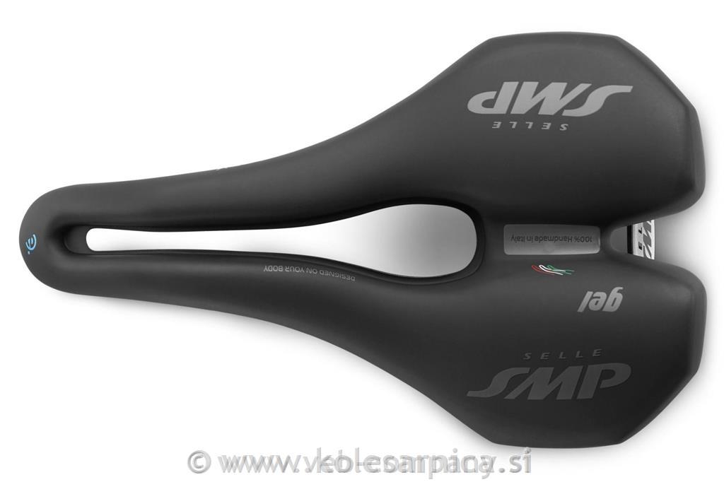 Sedeži SMP predstavljajo popolnoma nov in bistveno drugačen koncept kolesarskih sedežev. Njihova oblika je plod večletnega raziskovalnega dela. Znanstveniki so proučevali položaj kolesarja in vpliv sedeža na kolesarjevo zdravje in sposobnosti. Vsi modeli sedežev SMP imajo povešen nos sedeža, ki zagotavlja udoben položaj med dolgimi vzponi ter ekstremnimi spusti, hkrati pa nam s pomočjo stegenskih mišic omogoča boljši nadzor kolesa. Gel SMP TRK MAN s povešenim nosom in konkavno obliko zadnjega dela ter širokim centralnim kanalom za izničenje pritiska na organe in žile medeničnega dela in prostate. Z nekoliko ožjo zasnovo je narejen posebej za moške.