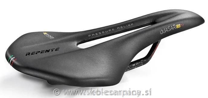 Na podlagi povratnih informacij, ki so jih inženirji tovarne REPENTE pridobili s strani profesionalnih kolesarjev in drugih kolesarskih navdušencev, so zasnovali vsestranski sedež QUASAR. Sedež se ponaša z odličnim razmerjem med kakovostjo in ceno. Zgornja ploskev sedeža je skoraj ravna in široka kar 142mm, odprtina pa bo poskrbela za razbremenitev presredka, školjka pa je dodatna ojačana z vbrizganimi karbonskimi vlakni. Zaradi karbonskih prečk je teža znižana na zgolj 119 g, kar ga uvršča med najlažje sedeže na trgu in je prva izbira množice tekmovalcev predvsem na vzponih.